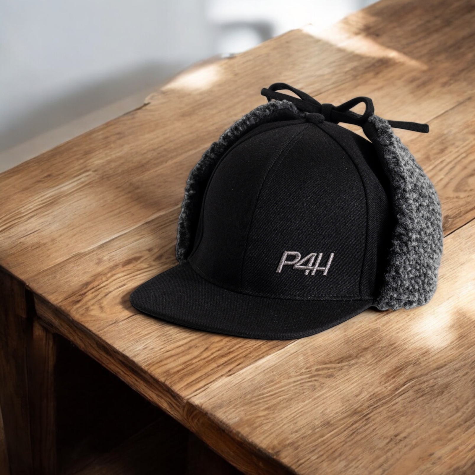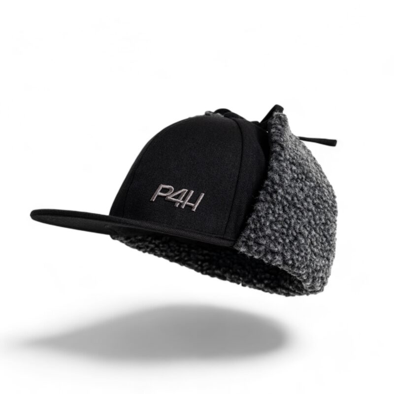 Denna trendiga keps med öronlappar är perfekt för kyliga dagar. Tillverkad av högkvalitativt material med en snygg, svart yta och detaljerade stickade öronlappar som ger både värme och stil. Kepsen har en modern design med en tydlig P4H-logotyp som framhäver ett urbant uttryck. Praktiska snören vid öronlapparna gör att du kan justera passformen för optimal komfort och värme. Idealisk för både stadslivet och utomhusäventyr under de kallare månaderna.